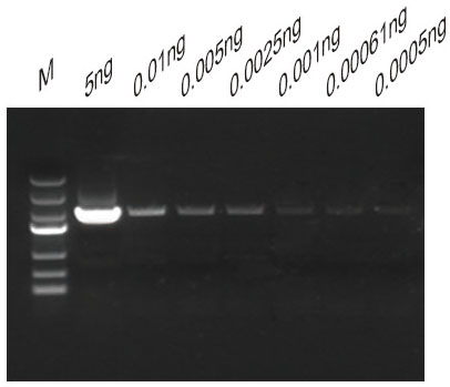 10K質(zhì)粒DNA可擴(kuò)增的濃度極限為:0.0005ng