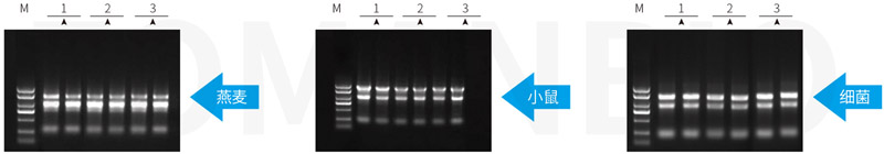 操作可視化:溶液呈粉紅色,便于分離水相和有機(jī)相。  以上參考圖分別取50mg燕麥葉片,20mg小鼠肝臟和1ml細(xì)菌DH5α菌液各數(shù)份,組織進(jìn)行液氮研磨處理,菌液離心收集細(xì)胞后,分別加入1ml Zomanbio RNApure 和 T、I公司相應(yīng)產(chǎn)品,按各自說明書進(jìn)行RNA提取。洗脫體積分別為80μl、100μl、60μl。RNA電泳上樣量分別為5μl,1%瓊脂糖凝膠電泳。