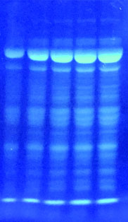 紫外照射下,膠中的顯色劑與蛋白作用,形成在紫外光下發(fā)射藍(lán)綠光的基團(tuán),此時(shí)膠在紫外光下,呈現(xiàn)藍(lán)綠光的蛋白條帶,方便wb等實(shí)驗(yàn)快速定量總蛋白內(nèi)參,且顯色后可繼續(xù)下游的wb實(shí)驗(yàn),有別于考馬斯亮藍(lán)染色后無法進(jìn)行wb實(shí)驗(yàn)。此功能需要紫外凝膠成像儀,例如常用的核酸成像儀等。