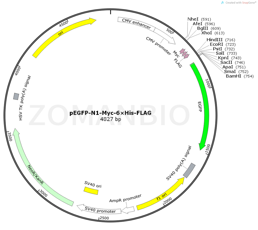 產(chǎn)品名稱:pEGFP-N1-Myc-6×His-FLAG質(zhì)粒