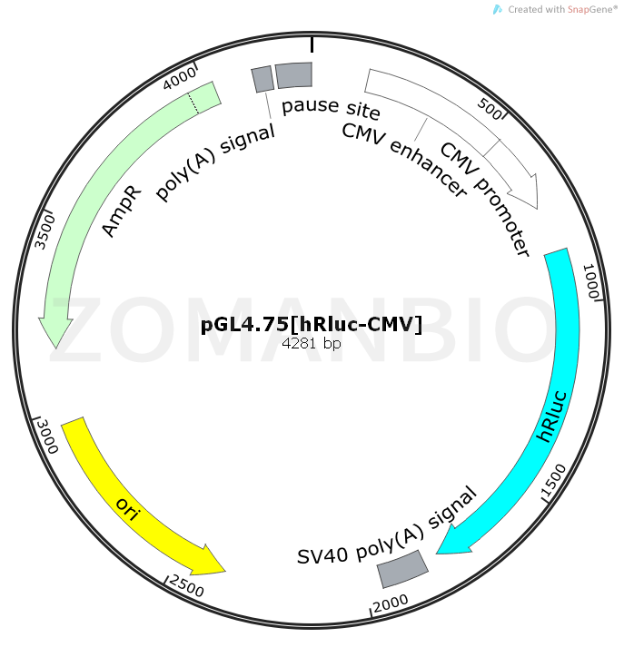 產(chǎn)品名稱:pGL4.75[hRluc-CMV]