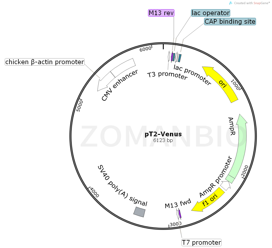 質(zhì)粒序列請下載:ZK576pT2-Venus哺乳轉(zhuǎn)座質(zhì)粒.txt
