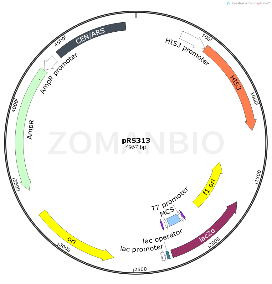 質粒序列請下載:ZK955pRS313釀酒酵母質粒.txt