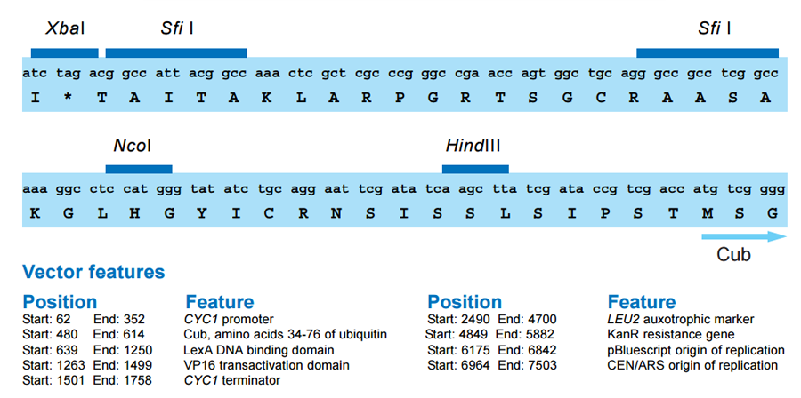 pBT3-C是一個(gè)用于膜蛋白酵母雙雜交實(shí)驗(yàn)的質(zhì)粒。The DUALmembrane system is intended for the detection and identification of interactions involving integral membrane proteins and membrane-associated proteins in yeast. The DUALmembrane pairwise interaction kit enables you to: