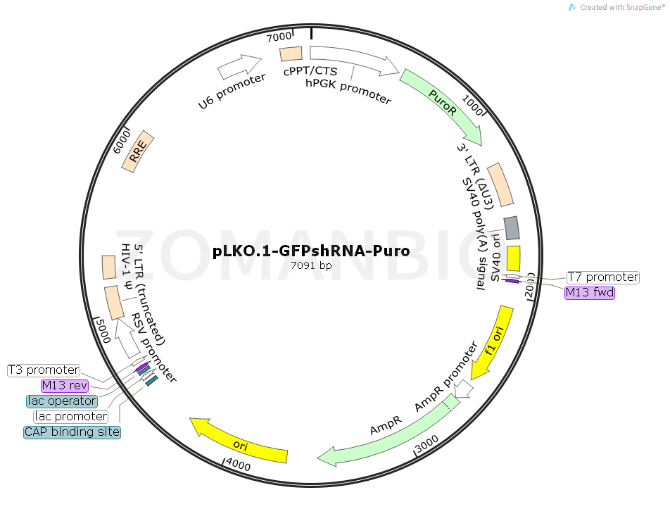 產(chǎn)品名稱:pLKO.1 GFP shRNA(陽性對照)